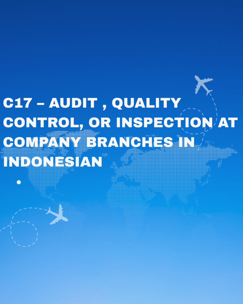 For foreign professionals involved in audit, quality control, or inspection activities at company branches in Indonesia, the C17 – Audit, Quality Control, or Inspection Visa provides a legal way to enter and perform these critical business functions.